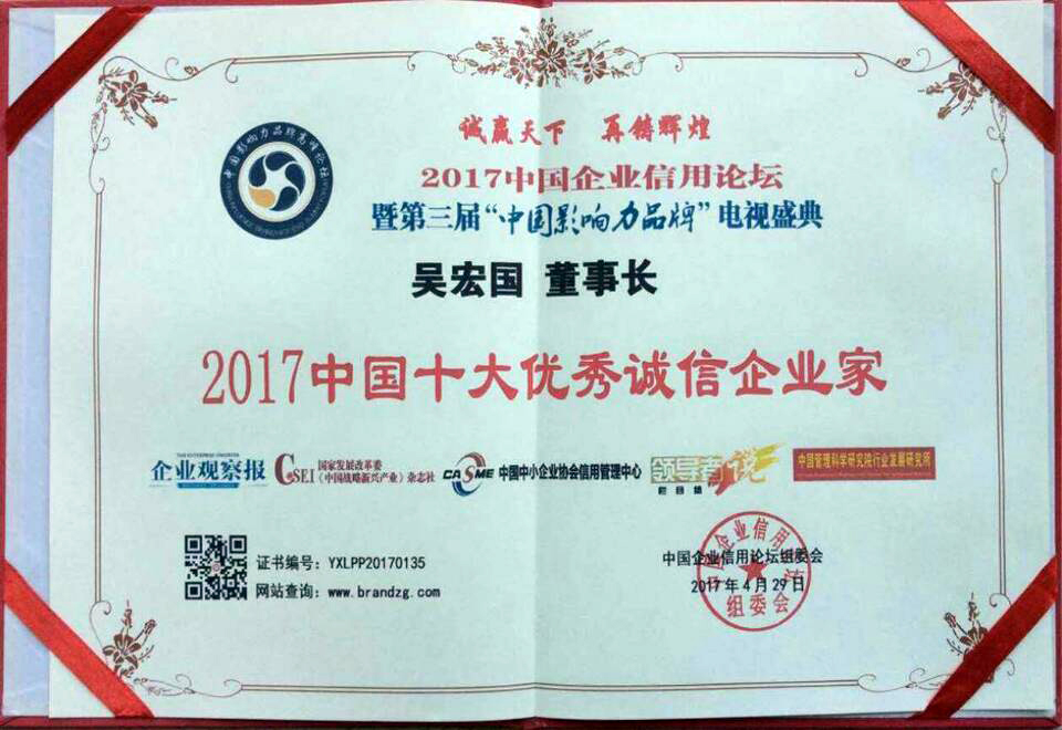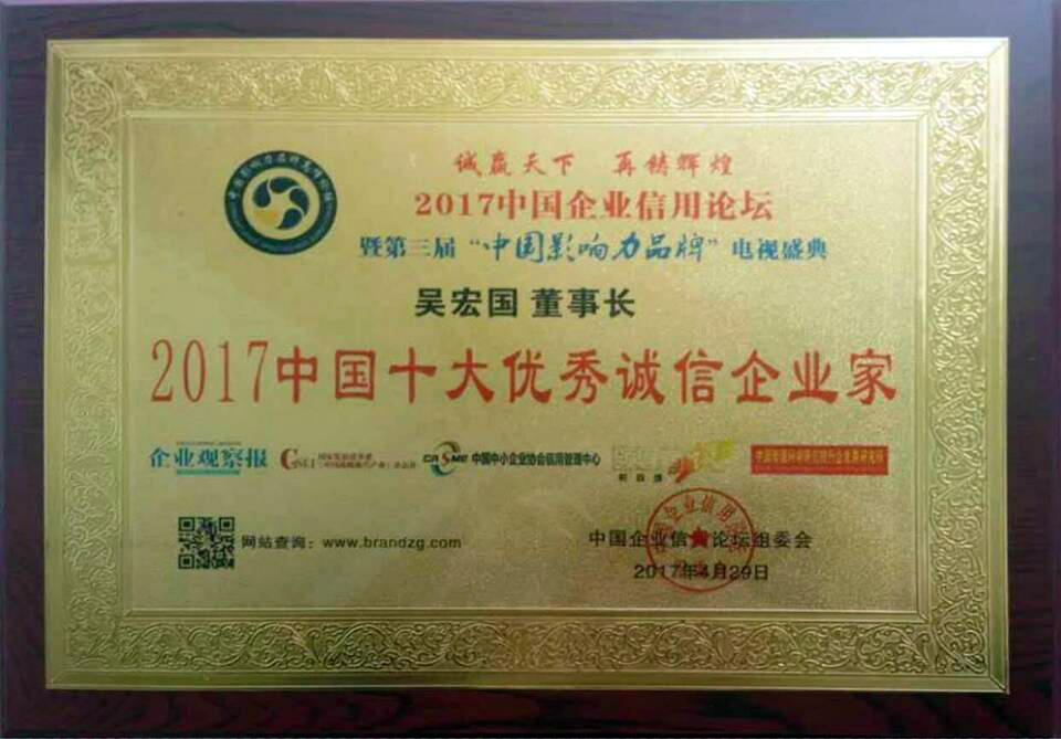集團(tuán)董事長(zhǎng)吳宏國(guó)榮獲“2017中國(guó)十大優(yōu)秀誠(chéng)信企業(yè)家”榮譽(yù)
