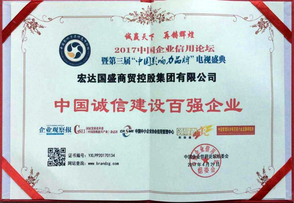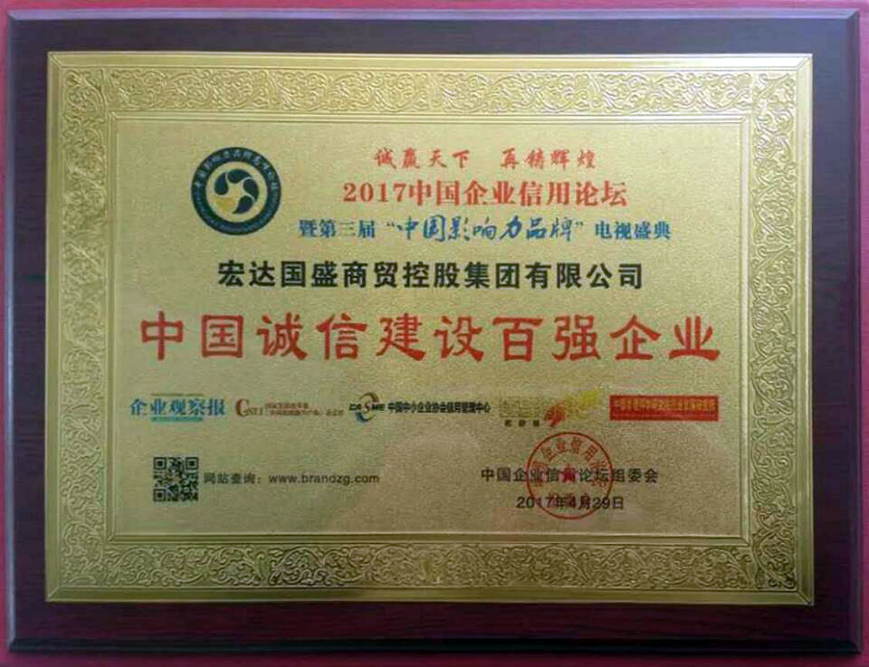 宏達(dá)國(guó)盛集團(tuán)榮獲“中國(guó)誠(chéng)信建設(shè)百強(qiáng)企業(yè)”殊榮